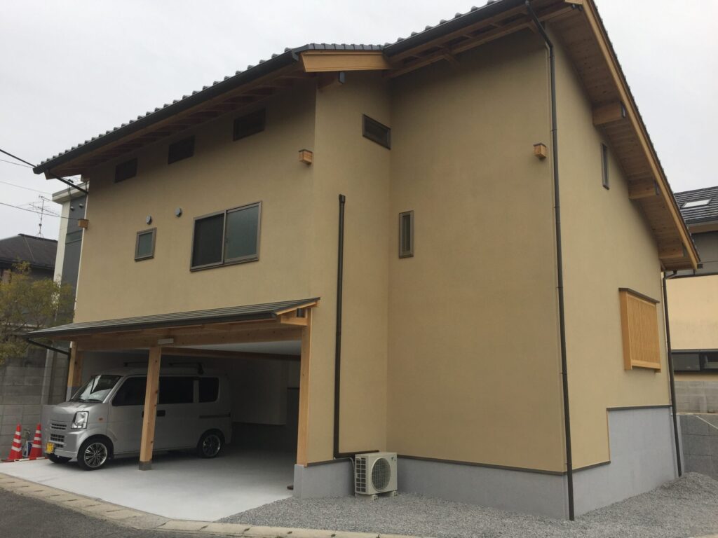 大きな梁丸太の見える、大工さんが手刻み手加工で建てた木の家です。