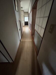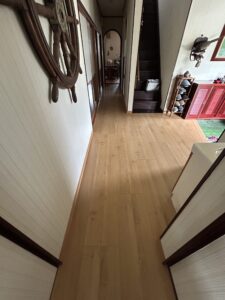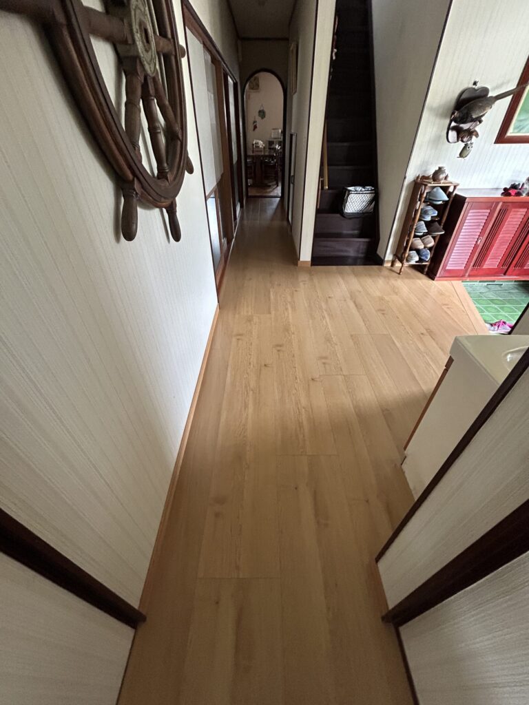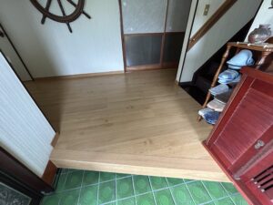 既存合板フローリングの劣化でフワフワな状態を、一部補強して上から新しいフローリングを施工しました。